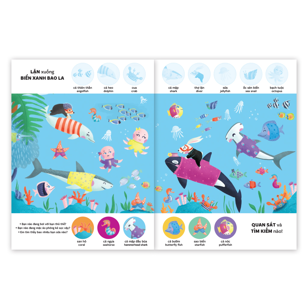 Trẻ nhỏ học bằng mắt, bằng tay và bằng sự tò mò tự nhiên. Một hình dán được đặt đúng chỗ, một chi tiết được tìm ra giữa bức tranh đầy màu sắc…đều là những “bài tập não bộ” tuyệt vời giúp trẻ phát triển khả năng tập trung, tư duy quan sát và khả năng xử lý thông tin. Bộ sách song ngữ 4 cuốn “TÌM KIẾM THÔNG MINH PHÁT TRIỂN KHẢ NĂNG TẬP TRUNG: LOOK, FIND & STICKER” được thiết kế theo đúng tinh thần ấy: rực rỡ – sinh động – thông minh – tương tác.