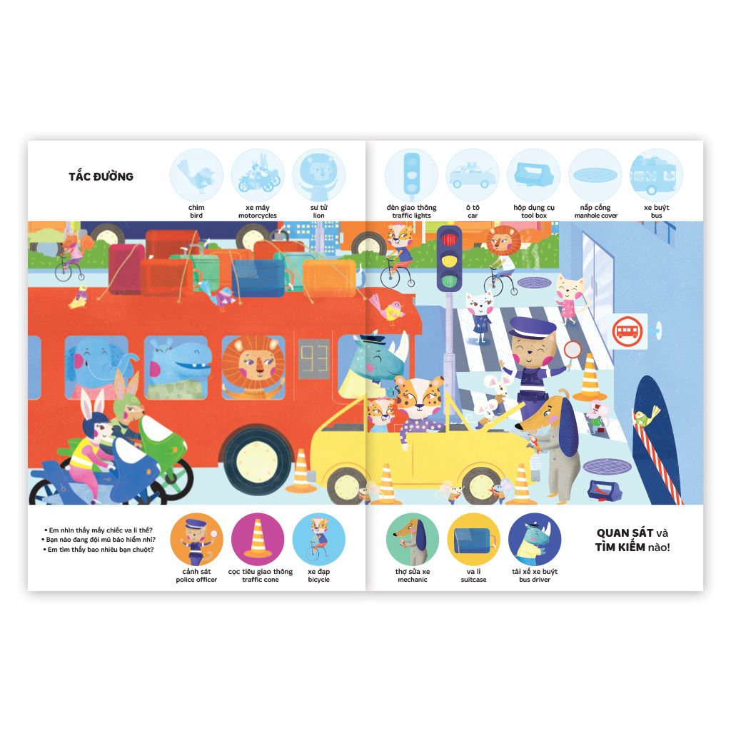 Trẻ nhỏ học bằng mắt, bằng tay và bằng sự tò mò tự nhiên. Một hình dán được đặt đúng chỗ, một chi tiết được tìm ra giữa bức tranh đầy màu sắc…đều là những “bài tập não bộ” tuyệt vời giúp trẻ phát triển khả năng tập trung, tư duy quan sát và khả năng xử lý thông tin. Bộ sách song ngữ 4 cuốn “TÌM KIẾM THÔNG MINH PHÁT TRIỂN KHẢ NĂNG TẬP TRUNG: LOOK, FIND & STICKER” được thiết kế theo đúng tinh thần ấy: rực rỡ – sinh động – thông minh – tương tác.